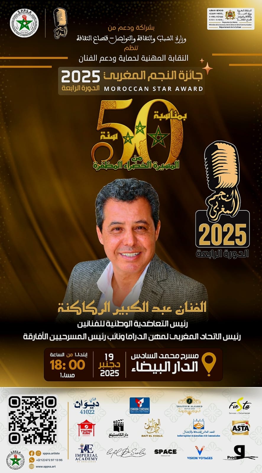 في أجواء فنية مميزة شهد مسرح محمد السادس بالدار البيضاء تكريم الفنان عبد الكبير الركاكنة خلال حفل جائزة النجم المغربي لسنة 2025 الذي نظمته النقابة المغربية لحماية ودعم الفنان وذلك اعترافًا بمساره الفني والنقابي الحافل وبإسهاماته المتواصلة في النهوض بالمجال الفني والثقافي بالمغرب.