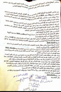 نعلن مقاطعة المؤتمر مما سيترتب عليه الإعلان عن مقاطعة المؤتمر عبر كل وسائل الإعلام لقاطعتنا المؤتمر كليا وندعو كافة القطاعات ان تحدو حدونا مع أشعار بالنازلة كل السلطات الوصية والمانحة ان تتدارك الموقف وتخصص من يسهر على على عملية الانتخابات بعد فحص وتقصي قانوني للمؤتمرين مع الاحتفاظ بحقنا في اللجوء إلى العدالة ان دعت الضرورة ذلك .