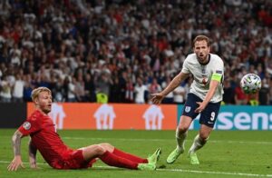 أحرز هاري كين هدف الفوز في الوقت الإضافي ليقود إنجلترا للتغلب 2-1 على الدنمارك باستاد ويمبلي الأربعاء والتأهل إلى نهائي بطولة أوروبا 2020 لكرة القدم أمام إيطاليا.