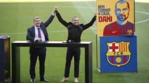 قدم برشلونة الإسباني يوم الأربعاء لاعبه البرازيلي داني ألفيس البالغ 38 عاما أمام قرابة عشرة آلاف مشجع تواجدوا على مدرجات ملعب “الكامب نو” معقل النادي الكتالوني.