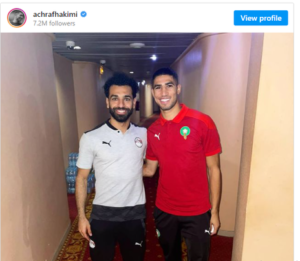 ويشارك حكيمي وصلاح مع منتخبي بلديهما في بطولة كأس أمم إفريقيا المقامة حاليا في الكاميرون، ونجح المنتخبان المغربي والمصري في التأهل إلى الدور ثمن النهائي.