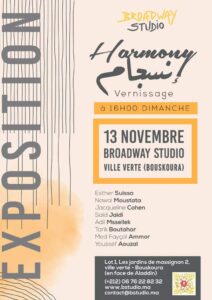 يستعد فضاء ستوديو بروديو بوسكورة بمدينة الدار البيضاء، ابتداء من 13 نونبر إلى نهاية شهر دجنبر 2022 ، لاحتضان معرض تشكيلي جماعي تحت عنوان “إنسجام”، لمجموعة من الفنانين التشكيليين ينتمون لمختلف المدارس الفنية المعاصرة.