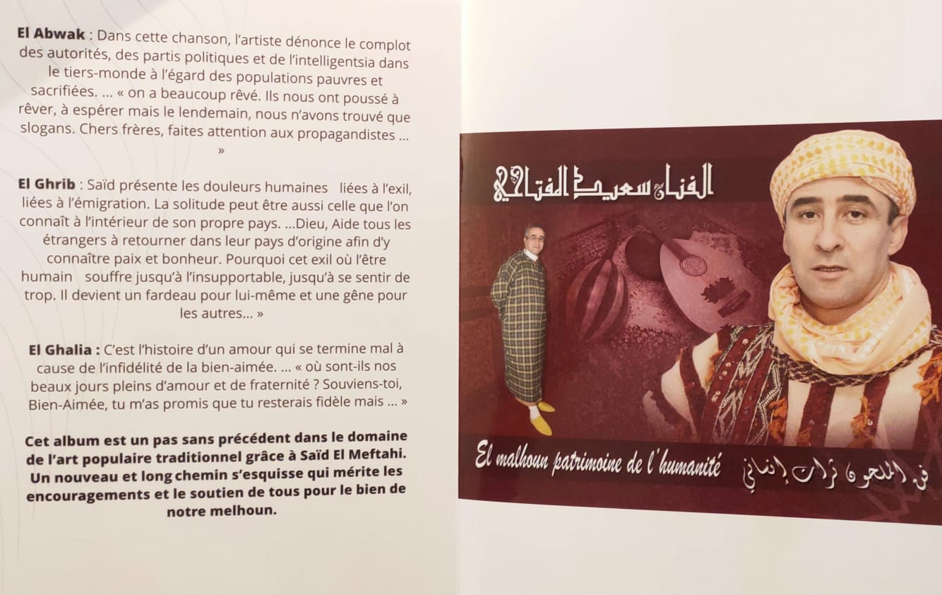 شيخ الملحون الأستاذ سعيد المفتاحي حينما تقوم بتهنئته يقول هذا التوشيح لا أعتبره لشخصي المتواضع ولكن أعتبره للفنون المغربية والثقافة المغربية وبالخصوص الملحون المغربي وأنا سعيد أن أرفع راية بلدي الذي اعشقه حتى النخاع.